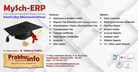 Prabhu Info is a Software development Firm dedicated in providing customized software's with a vision of simplifying the business process by automating the Organization. Dedication to deliver excellent products has been our core motive which has enabled us to design & develop User friendly software's for a wide variety of sectors ranging from Schools to Temples, Hardware and tools shop to Transport and logistics, Matrimonial Agencies to Textile business.